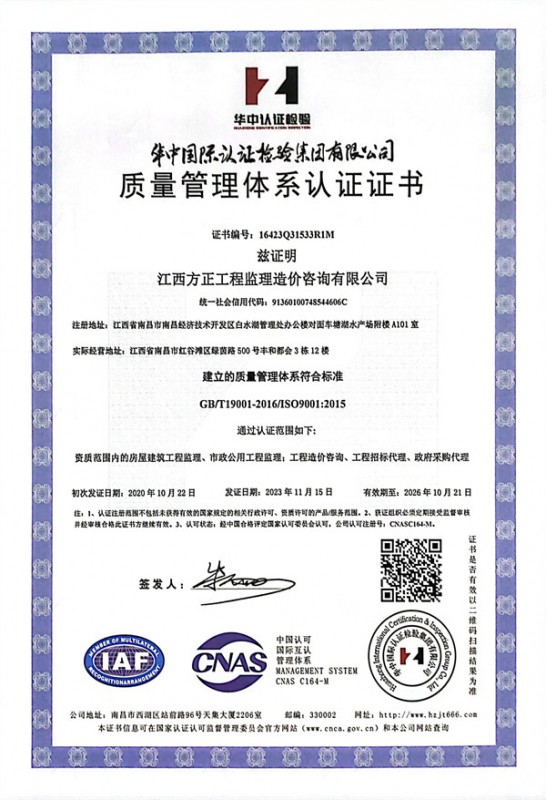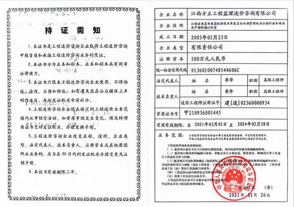 版權(quán)所有:江西方正工程監(jiān)理造價咨詢有限公司